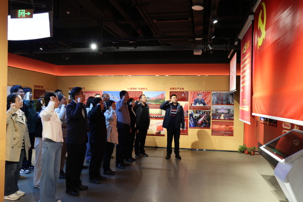 在讲解员的带领下,全体党员参观学习了党的百年历程主题展览馆。展览通过大量珍贵的历史图片、文献实物,系统呈现了中国共产党的百年风雨历程,全体党员深刻感受到中国共产党矢志践行初心使命、筚路蓝缕奠基立业、创造辉煌开辟未来的伟大征程。全体党员还通过“重走长征路”“重大历史事件排序”等红色团队项目,在轻松活跃的氛围中巩固党史知识,增强团队凝聚力。院长叶敏带领大家重温入党誓词,全体党员整齐列队,庄严宣誓,表达不忘初心、牢记使命的坚定信念。