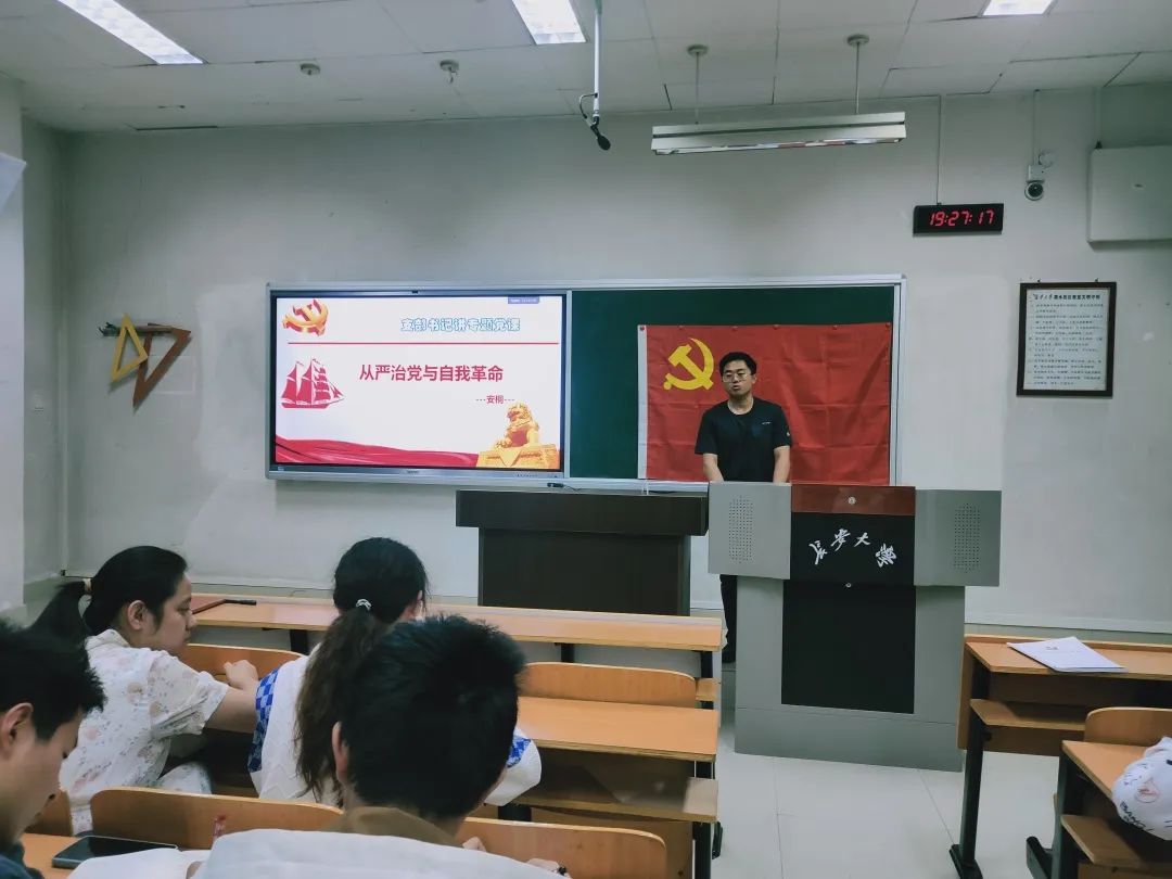 随后支部书记安桐以“全面从严治党与自我革命”为主题为支部讲了专题党课,结合具体实例向大家阐述了中国共产党人把握历史周期率,开辟自我革命道路的奋斗历程,并立足于全面从严治党诠释了中国共产党党员的要求和条件,号召大家将党的指导思想铭记于心,知行合一,将其运用于生活工作及学习实践当中。