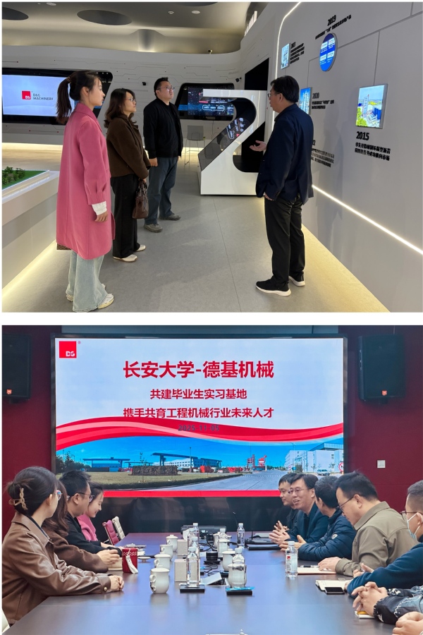 11月5日,雷剑一行前往廊坊德基机械科技有限公司,在企业负责人带领下参观了展厅与生产车间,近距离观看各类沥青搅拌产品,详细了解产品研发工艺、技术创新亮点及市场应用情况。座谈环节,企业总裁办公室主任周志刚代表公司,对学院长期输送的高素质专业人才致以诚挚感谢,并简要介绍了企业发展历程、核心业务布局及行业地位。总工程师周伟强调了企业当前对优质人才的迫切需求,希望与学校建立长期稳定的合作关系。学院党委副书记雷剑介绍了学科设置、人才培养、毕业生就业及学生创新竞赛成果,希望通过此次交流拓宽毕业生就业渠道,实现校企人才供需精准对接。副院长贺朝霞围绕产学研合作、产教融合等与企业进行深入沟通,希望推动双方资源共享、优势互补。