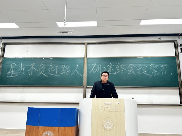 雷剑结合自身经历与同学们分享交流。他鼓励大家,考研如同一场马拉松,如今已进入最关键的冲刺阶段,叮嘱同学们保持平和心态,沉着应对考试挑战,同时提醒大家考试结束后不能大喜大悲,以从容姿态迎接人生新阶段。